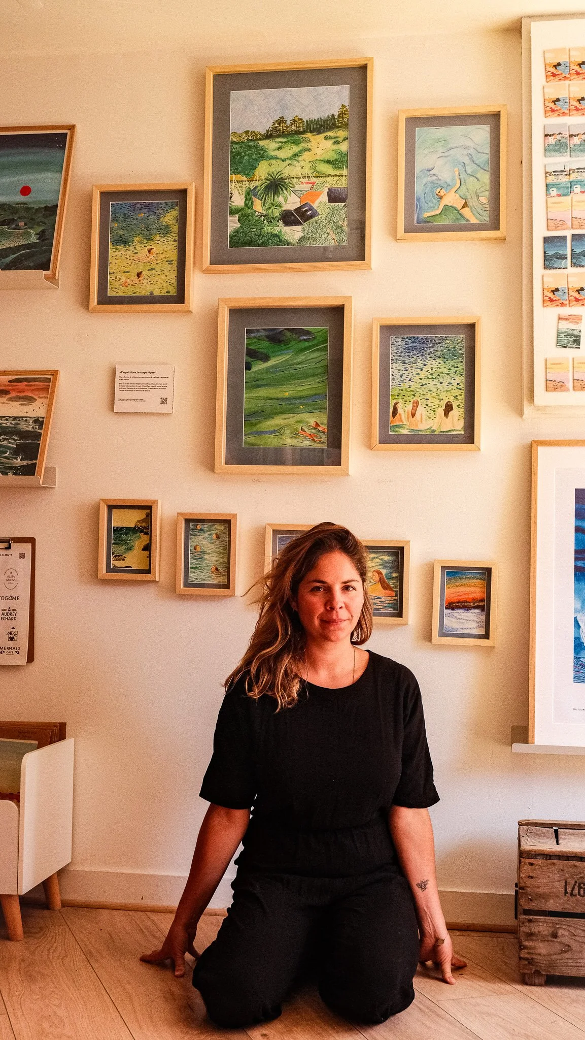 Micro exposition sur les murs de la boutique Maison Indigo, une collection de 9 illustrations intitulées “L’esprit libre, le corps léger”